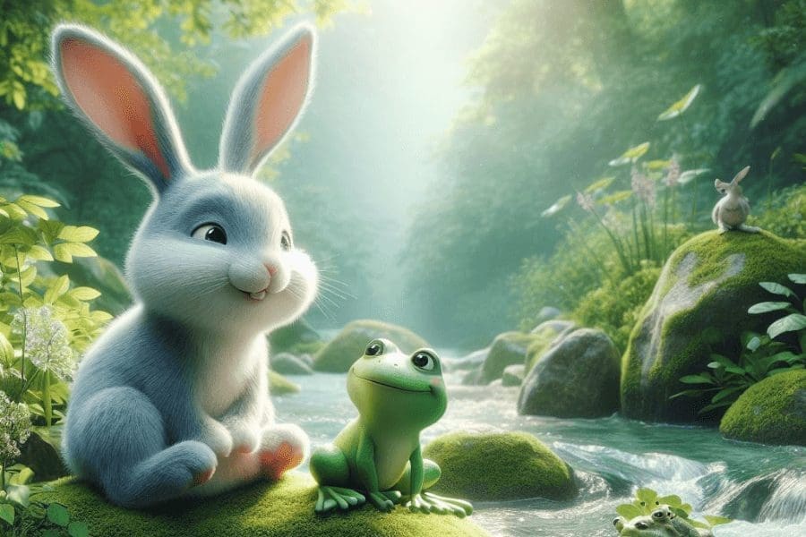 Жабе око језера, чујући топотање, уплаше се, па ти брже-боље стану стрмоглаво скакати у језеро. Видећи то један стари зец спреда, окрене се и викне: